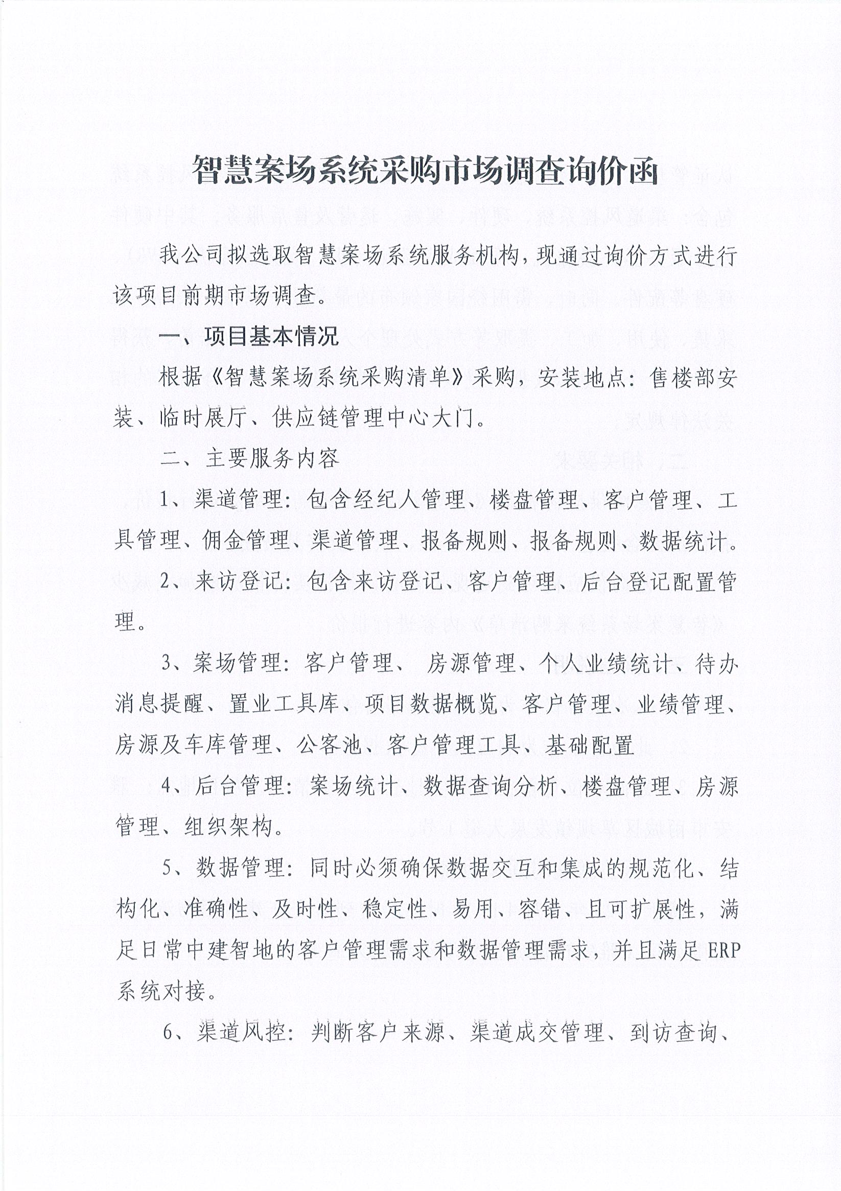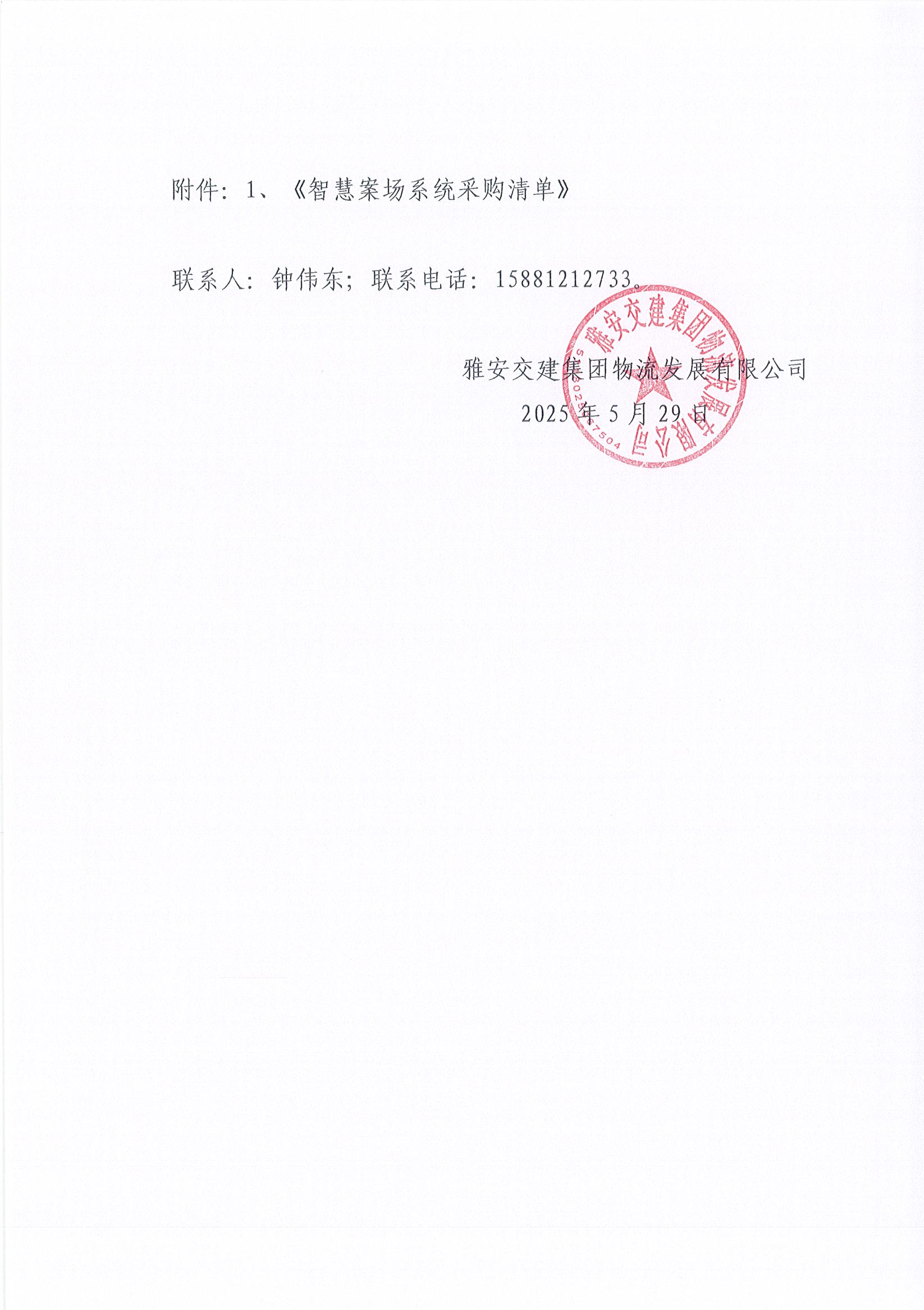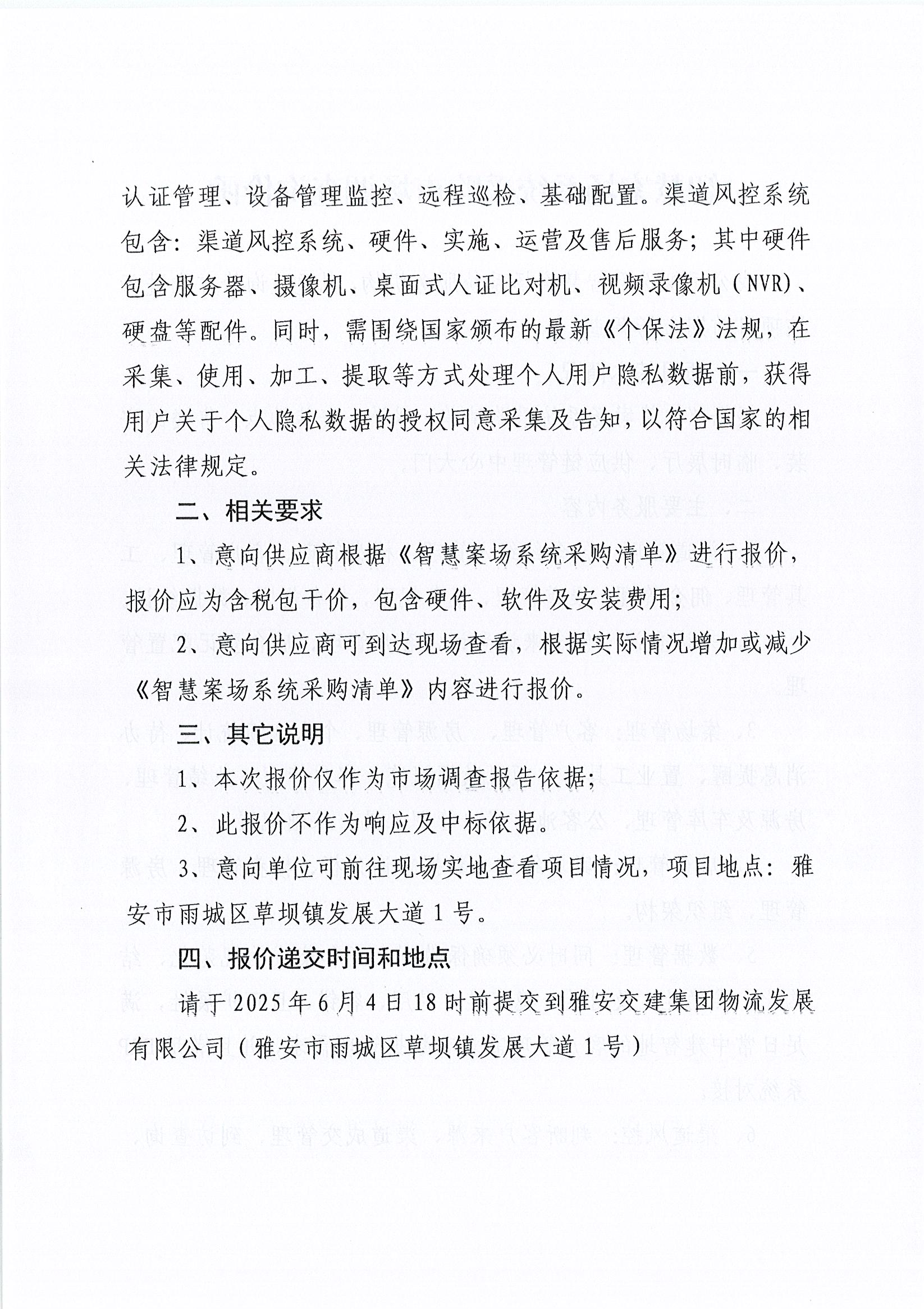 雅安交建集團物流發(fā)展有限公司智慧案場系統(tǒng)采購市場調查詢價函