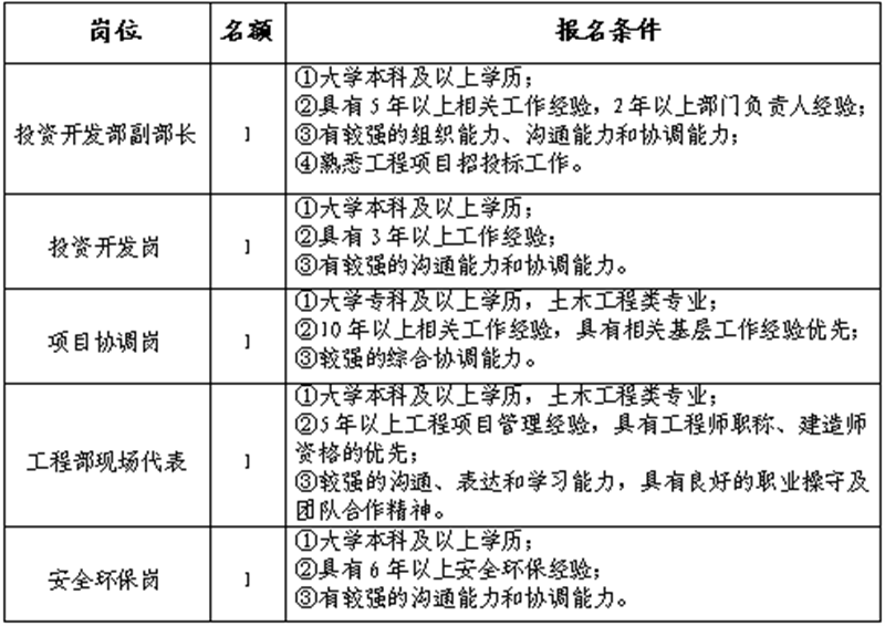 雅安交建集團資產(chǎn)經(jīng)營管理有限公司是雅安市重點國有企業(yè)雅安市交建集團下屬子公司,主要從事企業(yè)資產(chǎn)經(jīng)營管理;項目投資;土地整理等業(yè)務(wù)。根據(jù)公司發(fā)展需要,決定面向社會公開招聘5名工作人員,現(xiàn)將有關(guān)事項公告如下: