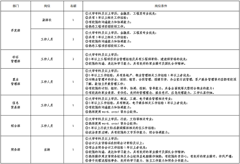 雅安交建集團(tuán)運(yùn)通貿(mào)易有限公司是雅安市重點(diǎn)國(guó)有企業(yè)雅安市交建集團(tuán)下屬子公司。根據(jù)公司發(fā)展需要,決定面向社會(huì)公開(kāi)招聘9名工作人員,現(xiàn)將有關(guān)事項(xiàng)公告如下: