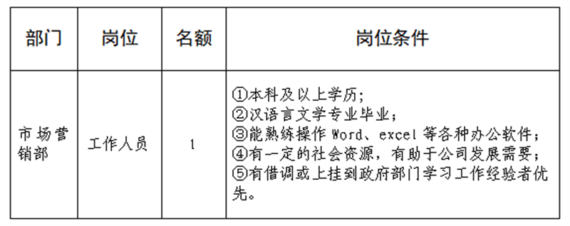 根據發(fā)展需要,決定面向社會公開招聘雅安市交通建設(集團)有限責任公司(以下簡稱“雅安交建集團”)所屬子公司工作人員1名,現將有關事項公告如下: