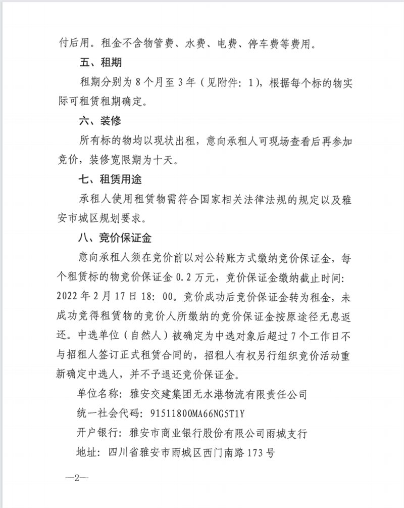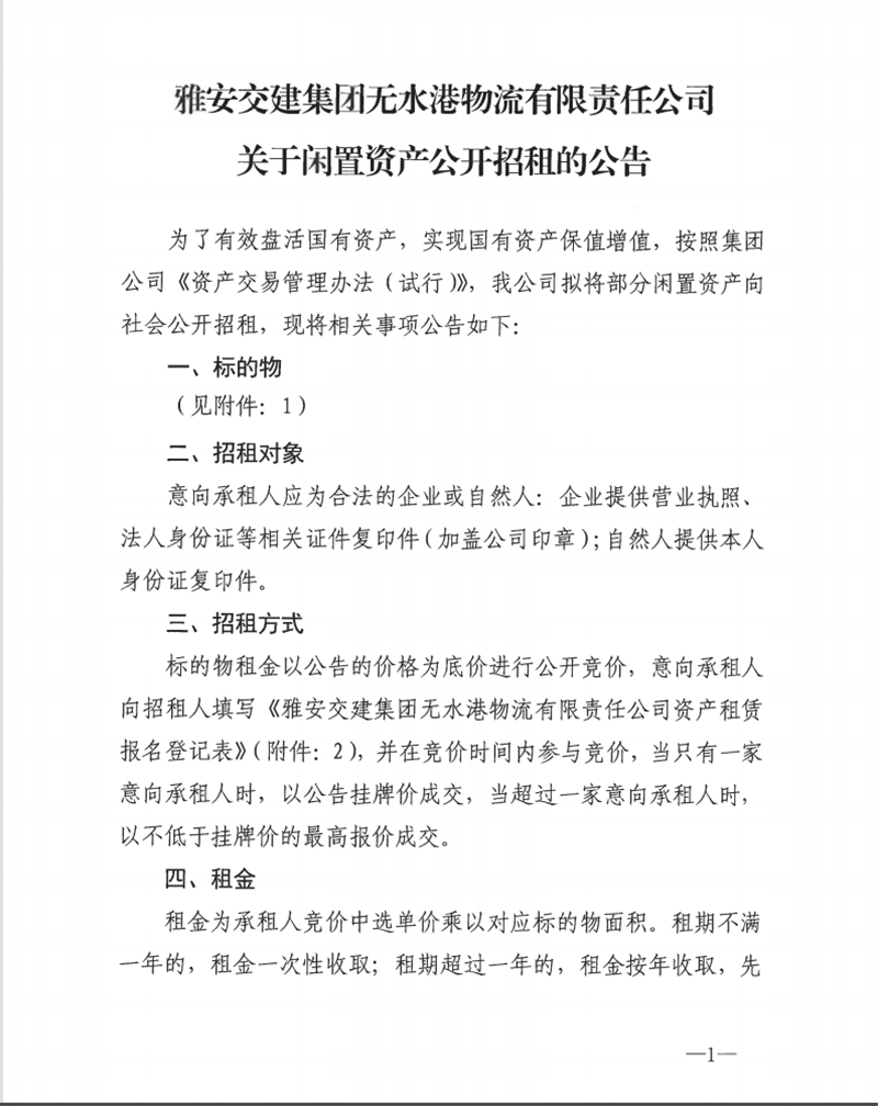 無水港公司關于閑置資產(chǎn)公開招租的公告