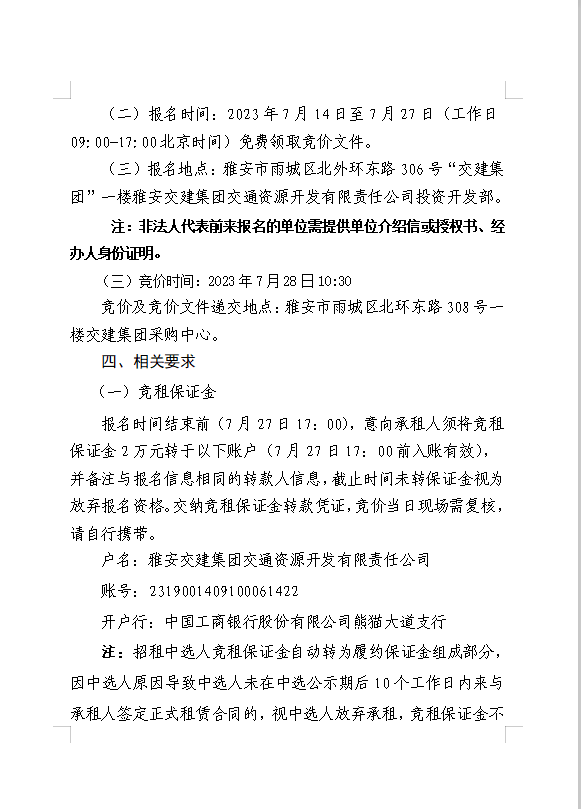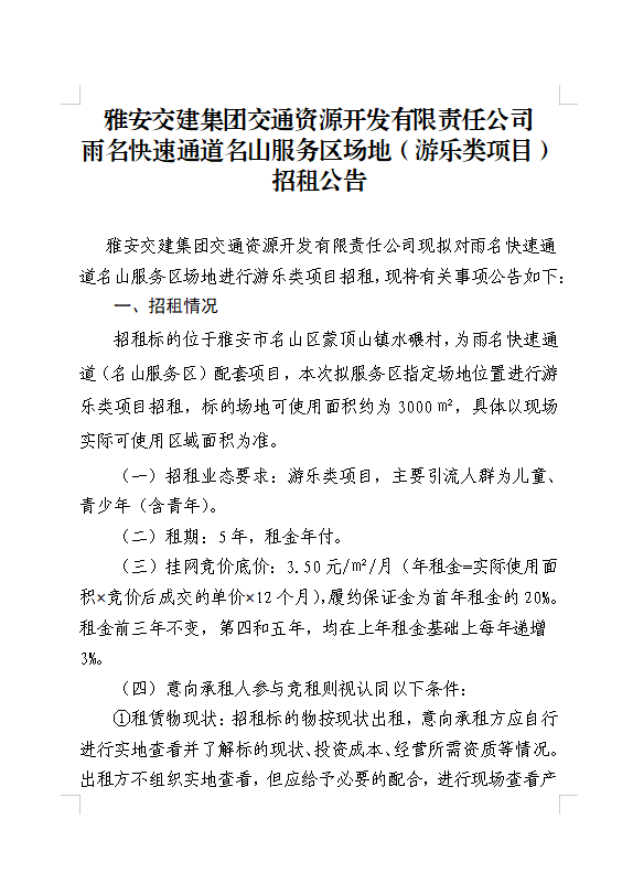 雅安交建集團(tuán)交通資源開發(fā)有限責(zé)任公司雨名快速通道名山服務(wù)區(qū)場(chǎng)地(游樂類項(xiàng)目)招租公告附件