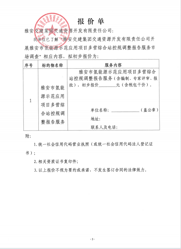 雅安交建集團交通資源開發(fā)有限責(zé)任公司雅安市氫能源示范應(yīng)用項目多營綜合站控規(guī)調(diào)整報告服務(wù)市場調(diào)查公告