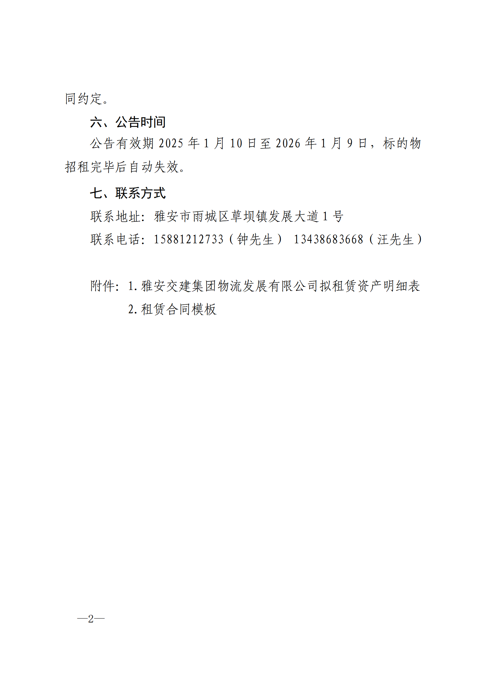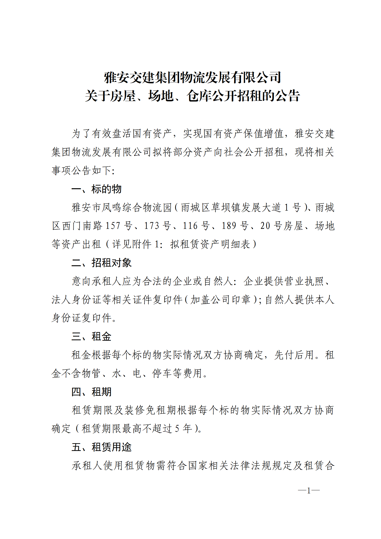 雅安交建集團物流發(fā)展有限公司 關(guān)于房屋、場地、倉庫公開招租的公告