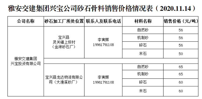 ÑŰ²½»½¨¼¯ˆF(tu¨¢n)ÅdŒš¹«Ë¾É°Ê¯¹ÇÁÏäNÊÛƒr(ji¨¤)¸ñÇé›r±í£¨2020.11.14£©