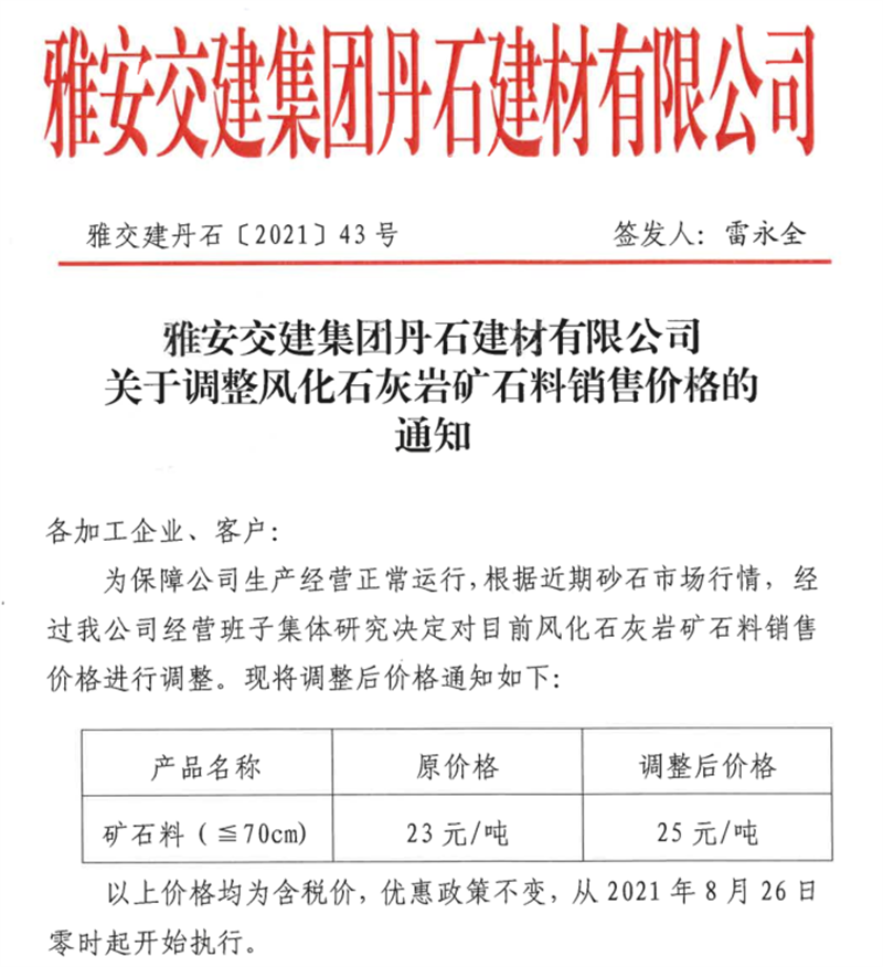 ÑŰ²½»½¨¼¯ˆFµ¤Ê¯¹«Ë¾êPÓÚÕ{(di¨¤o)ÕûïL»¯Ê¯»Ò?gu¨©)rµVʯÁÏäNÊÛƒr¸ñµÄ֪ͨ