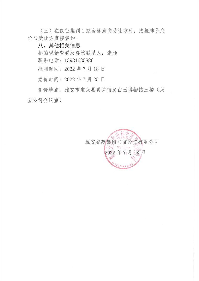興寶公司寶興縣靈關(guān)鎮(zhèn)代碑寺土地整理項目10萬噸可利用棄渣競價銷售掛網(wǎng)公告掛網(wǎng)公告7.22(5萬噸)