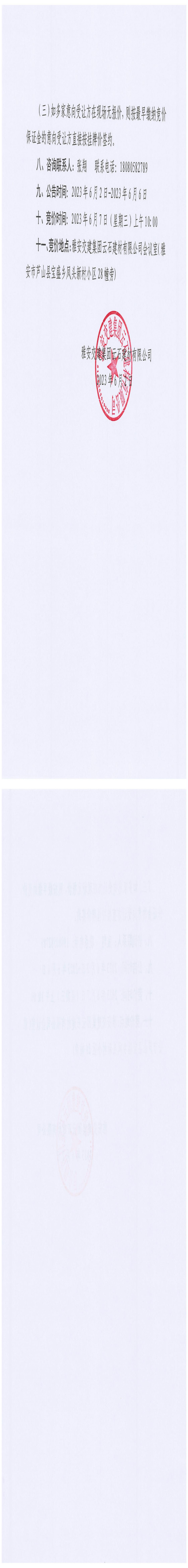 雅安交建集團興寶投資有限公司寶興縣靈關(guān)鎮(zhèn)代碑寺土地整理項目5萬噸細骨料競價銷售公告(2023.6.5)